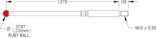 M1.6 Thds, Ø2.0mm Ruby Ball X 1.378″ Long.