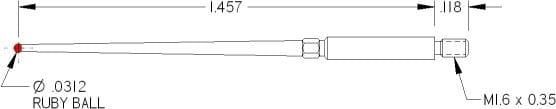 M1.6 Thds, Ø.031″ Ruby Ball X 1.457″ Long.