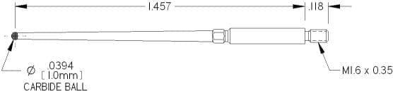 M1.6 Thds, Ø1.0mm Carbide Ball X 1.457″ Long.
