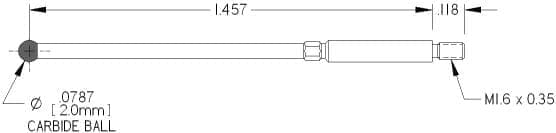 M1.6 Thds, Ø2.0mm Carbide Ball X 1.457″ Long.