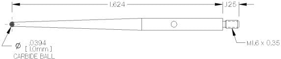 M1.6 Thds, Ø1.0mm Carbide Ball X 1.624″ Long.