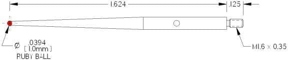 M1.6 Thds, Ø1.0mm Ruby Ball X 1.624″ Long.