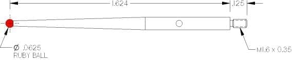 M1.6 Thds, Ø.062″ Ruby Ball X 1.624″ Long.