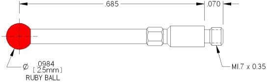 M1.7 Thds, Ø2.5mm Ruby Ball X .685″ Long.