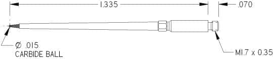 M1.7 Thds, Ø.015″ Carbide Ball X 1.335″ Long.