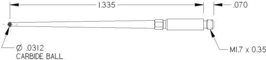 M1.7 Thds, Ø.031″ Carbide Ball X 1.335″ Long.