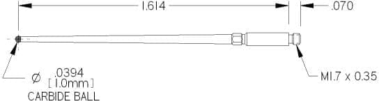 M1.7 Thds, Ø1.0mm Carbide Ball X 1.614″ Long.