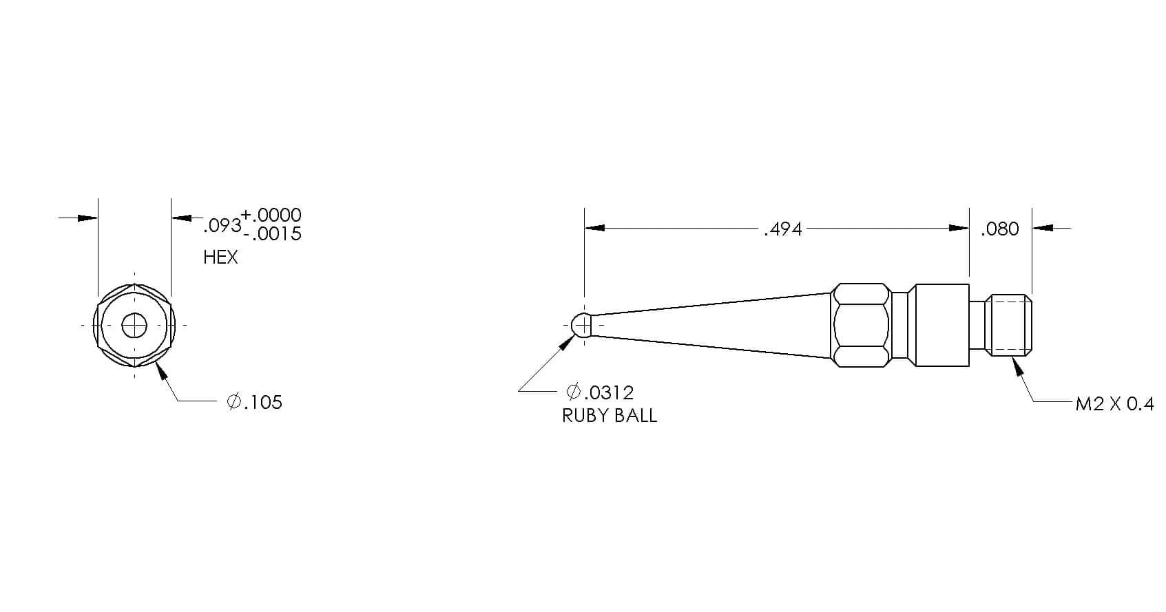 M2 Thds, Ø.031″ Ruby Ball X .494″ Long