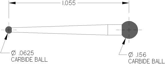 For Brunswick “Finger Probe” Gageheads, Ball End Mounting Style, Ø.062″ Carbide Ball X 1.055″ Long.