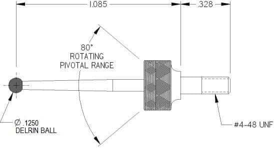 Plastic Tipped, Non Marring, Indicator Tip; Adjustable Swivel Style For Mahr Federal Electronic Lever Type Gage Heads, 4-48 Thds, W/ø.125″ Delrin Ball X 1.085″ Long